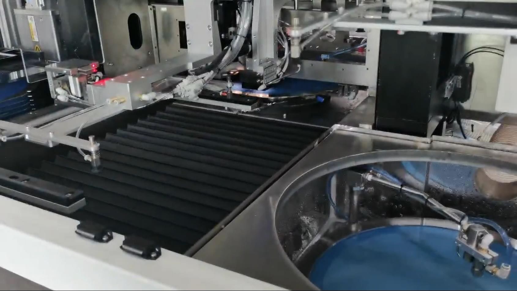 全自動(dòng)雙軸晶圓劃片機(jī)主要用于半導(dǎo)體晶圓、集成電路、QFN、發(fā)光二極管、miniLED、太陽能電池、電子基片等的劃切,適用于包括硅、石英、 氧化鋁、氧化鐵、砷化鎵、鈮酸鋰、藍(lán)寶石和玻璃等材料。其工作原理是通過空氣靜壓主軸帶動(dòng)金剛石砂輪劃切刀具高速旋轉(zhuǎn),將晶圓或器件沿切割道方向進(jìn)行切割或開槽。 機(jī)型實(shí)現(xiàn)了晶圓從裝片、對準(zhǔn)、切割、清洗到卸片的自動(dòng)化操作。該機(jī)型配置了大功率對向式雙主軸,Z1和Z2軸上都配置了NCS和專用顯微鏡,大幅度減少對準(zhǔn)和檢查時(shí)間,從而降低人工成本、提高生產(chǎn)效率。