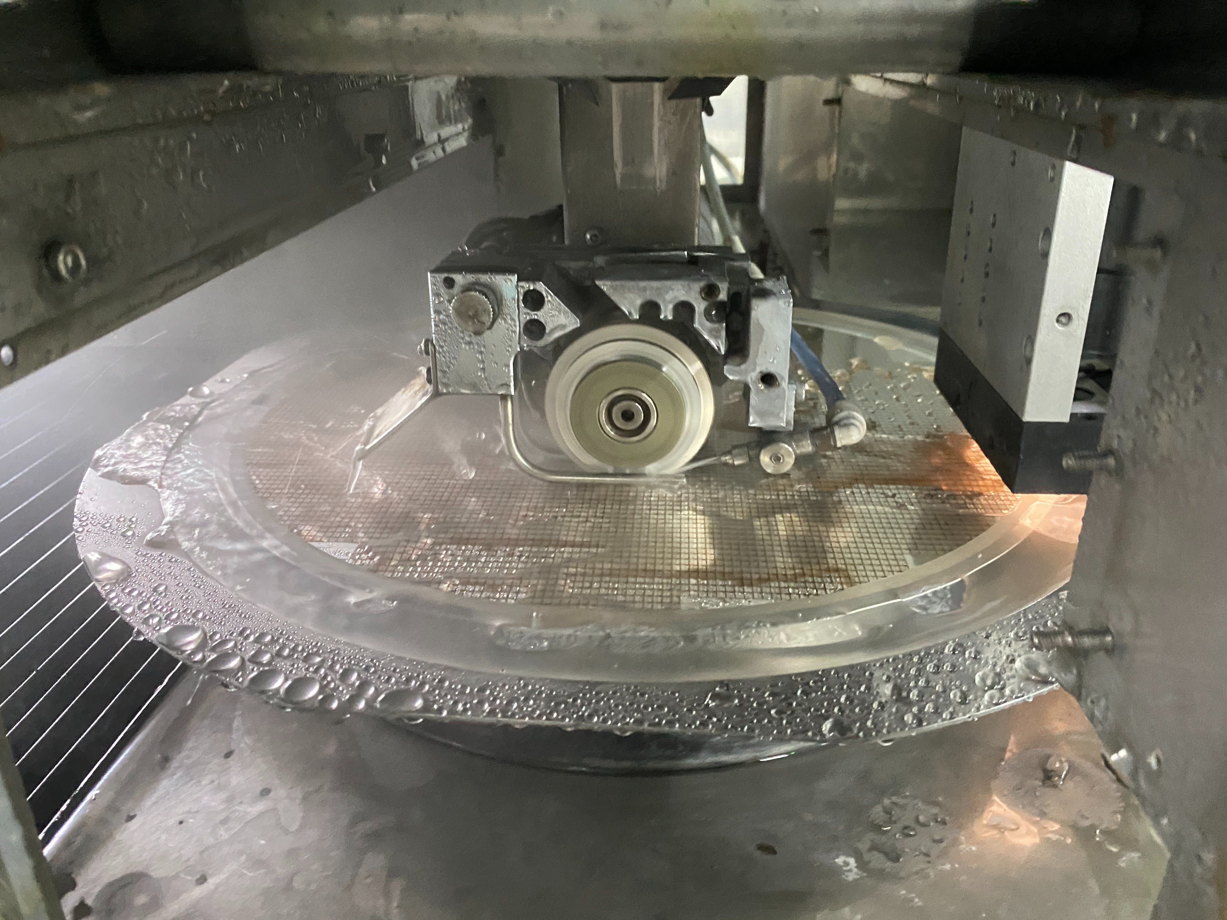 在半導體芯片制造流程中,前道工序(光刻、刻蝕、沉積、離子注入等)會在一整片圓形的硅片、碳化硅片等晶圓基材上,同步制作成百上千顆甚至上萬顆獨立的芯片電路,此時整片晶圓是一個完整的圓盤,所有芯片連為一體。