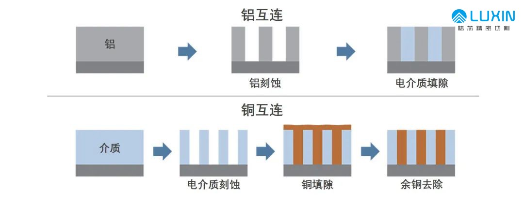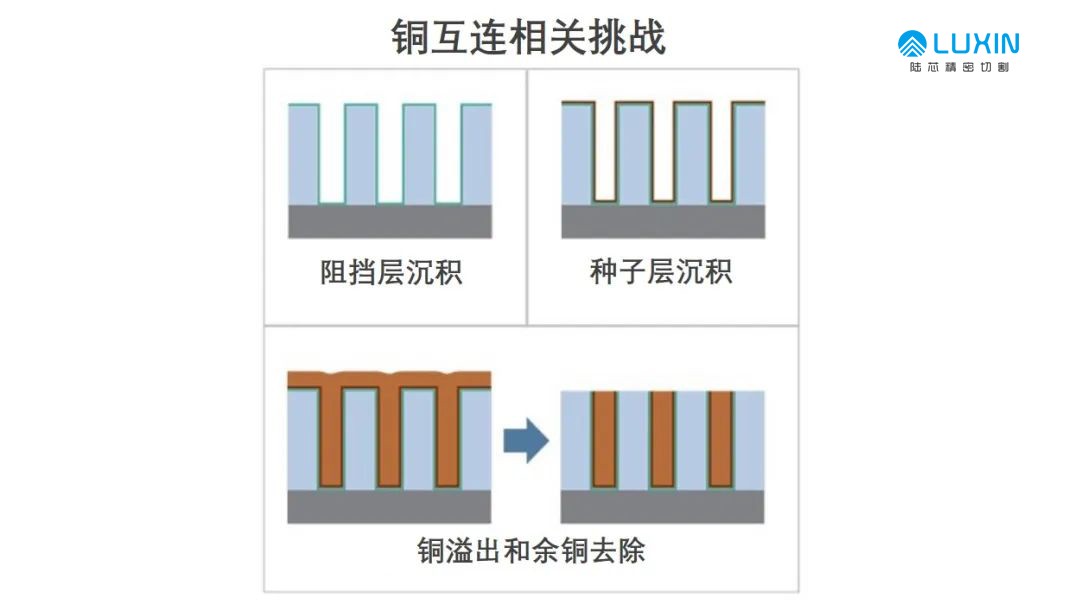 通過博捷芯精密劃片機對上述可以看出,銅互連和鋁互連的區別在于,多余的銅是通過金屬CMP而非刻蝕去除的。