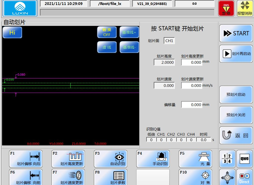 界面點擊半自動劃片后,點擊手動劃片按鈕后,進入界面手動劃片: