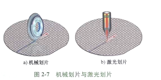 激光切割屬于無接觸式切片,不對晶圓產生機械應力,對晶圓損傷小,可避免芯片破碎、損壞等問題 (見圖 2-7)。由于激光在聚焦上可以達到亞微米數量級的特點,因此對晶圓的微處理更有優勢。同時,激光片的速度可以達到 150mm/s,與機械切片率相比,它可以大大提高,可以勝任薄晶圓的加工任務,也可以用來切割一些形狀復雜的芯片,如六角形。但昂貴的設備成本是制約激光劃片普及的因素之一。